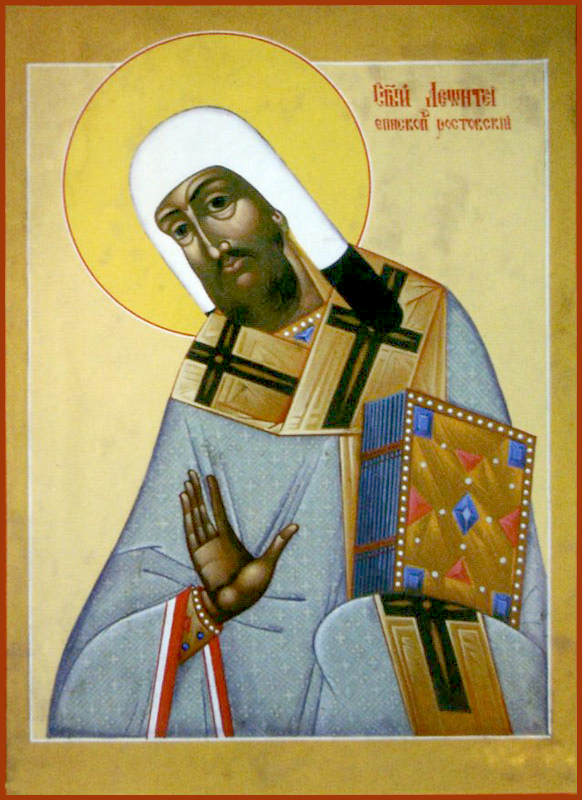 Святитель Леонтий, епископ Ростовский – один из выдающихся архипастырей XI века земли Русской. По словам святителя Симона, епископа Владимирского, которые можно считать достаточно достоверными, святой Леонтий был пострижеником Печерского монастыря и по происхождению русский, а не грек, хотя родился в Константинополе. Промыслом Божиим будущий просветитель и апостол Ростовской земли проходил послушание под духовным руководством основателей русского монашества преподобных Антония († 1073; память 28 сентября/11 октября и 10/23 июля) и Феодосия († 1074; память 3/16 мая, 14/27 и 28 августа/10 сентября) Печерских. Он был первым епископом, вышедшим из монастыря в Киевских пещерах, воспитавшего многочисленных святителей Русской земли. «От того Печерского монастыря Пречистыя Богородицы, – пишет святой Симон, – мнози епископы поставлены быша и яко светила светлая осветивша всю Русскую землю Святым Крещением; первый Леонтий, епископ Ростовский, священномученик, егоже Бог прослави нетлением и бысть первопрестольник, егоже невернии, много мучивше, убиша».